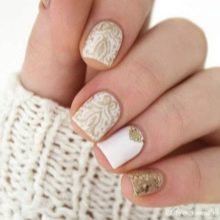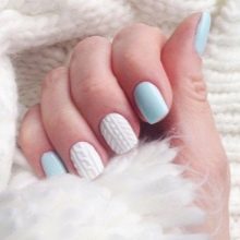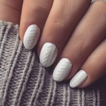 - Knitted. This design is original and unusual. It looks interesting and fashionable, but it is advisable to resort to it only during the cold seasons. The most advantageously knitted manicure looks in a classic white color. From it comes warmth and comfort.