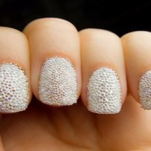 - With broths. Otherwise, this original manicure is called caviar. This name is due to the fact that the broths are different-sized beads that are very similar to small eggs. Bouillon can fill completely the entire surface of the nail plate, or only part of it. Using such inclusions, you can create unusual and spectacular ornaments.