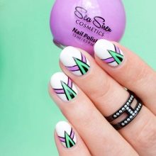 - white-green - snow-white manicure can be diluted with different shades of green, for example, with a trendy mint color (you can paint all nails with white, and only one of them highlight under mint varnish or make a gradient);