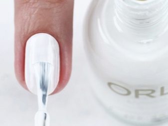 - Before applying white varnish, it is better to thoroughly prepare the nail plates: sand to a flat surface and degrease.