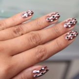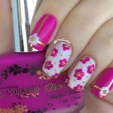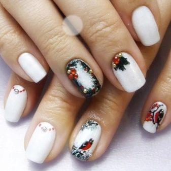 If it seemed that even this is not enough, then on long nails you can use a large amount of rhinestones, and on short - a little foil, shine.