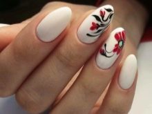 Confident girls can choose a combination of white and red, which speaks of the originality and versatility of nature. The poppy color looks amazing on a white background, but you can apply it not to every finger, but only to the little finger or ring finger. In combination with white, red loses its aggressiveness, but still remains bright and alluring. You can alternate decoratively decorated nail plates with plain, make strips, apply geometric patterns. Abstraction looks very modern, patterns will never go out of fashion, the more individual elements, the better, but this is only on long nails. Today, the gradient is at the peak of its popularity, the transition line is taking shape slowly, and a special palette is obtained. You can make such a manicure at home with the help of a small piece of a foam sponge.