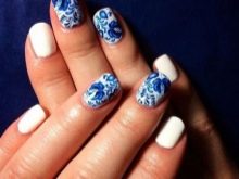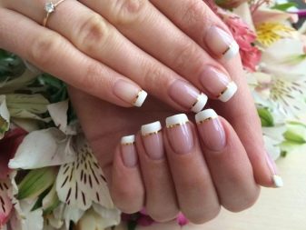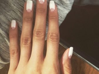 On the Internet there are a lot of positive reviews about any design on white, but women and masters caution against the wrong choice of pattern and advise you to carefully select it to the length of the nail. In addition, the foundation must be applied carefully so as not to stain the skin around the nail plate. It is better to use a nail polish remover that does not contain acetone, it can seriously damage a brittle nail plate. It is necessary to strive to protect the manicure from the effects of heat and water, since the extended nails can not withstand high temperatures, they will begin to exfoliate and darken. When washing dishes or working with household chemicals, always use rubber gloves. They protect not only manicure, but also the skin of the hands. Adjustments are made every 3-4 weeks, the simpler the design, the faster the restoration of the design.