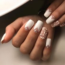 In spring and summer, girls move to lighter shades in clothes and nail design, so white manicure becomes especially popular. There are many options for making short and long nails attractive. You can use numerous decorative elements and create a festive decoration.