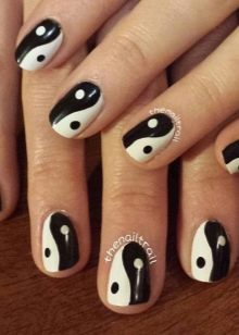 If a woman prefers classics, then do not come up with a better option than black and white. It can be not only strips of different thicknesses, but also circles, ornaments, butterflies and birds, zigzags. If you want to give a manicure solemnity, it is worth using gold or silver glitters. The golden hole looks very nice on the nails. Not so popular, but Khokhloma looks very unusual in contrasting colors. It is performed with a special thin brush and requires professionalism from the master.