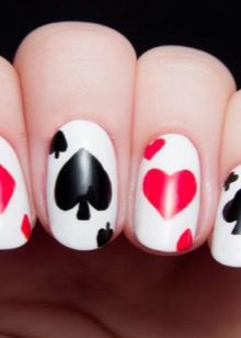 Many girls love monochrome white manicure, because it can be used as a basis for other techniques. Recently, the so-called newspaper design and craquelure are gaining popularity, when the effect of spreading varnish is created. Moreover, without white it is impossible to perform a French manicure. Ideas are full of modern art of nail design, graphic images, imitation of a chessboard, yin-yang image and even card symbols are widely used. Summer design is designed to be gentle, against such a background fashionable lace, patterns are clearly visible, geometry looks good. Brilliant blurs complement any design. You should not think that white manicure is the simplest, it has its own uniqueness - a lot of space for imagination.