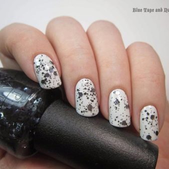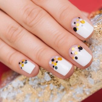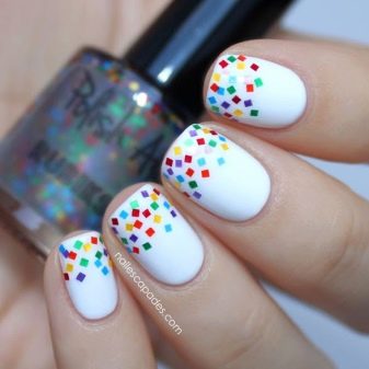 Alone, it may seem boring, but it is worth adding scenery, as a simple white color will sparkle on the nails with new colors.
