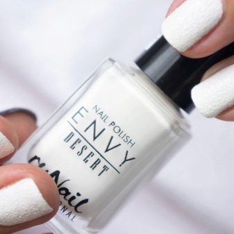 White gel polish with sand and flowers looks good. The Japanese gave the world kamifubuki, which can be found on the market in a large assortment. These are mugs of different sizes, presented in a bag or box. This is one of the decorative elements, presented in finished form. They are applied to a sticky but dried base and coated with a colorless gel.