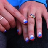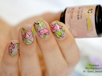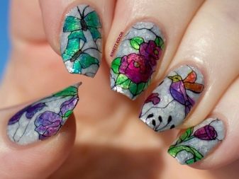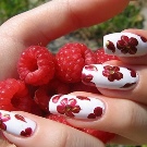 On nails covered with the most ordinary varnish in two layers, the sliders are very easy to glue. They are applied to a dried surface with tweezers or with a stick with an adhesive side. To fix the picture, crush with a cotton swab, eliminating bumps and air bubbles. To keep the slider for a long time, a transparent lacquer-fixer is applied on top.