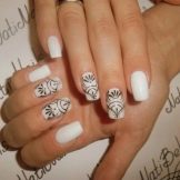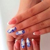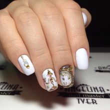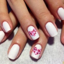 Various patterns on a white surface look spectacular. It has already become a tradition to decorate nails for the holidays. Bright Christmas toys on a white background are painted for the New Year, hearts for Valentine's Day, a St. George ribbon for May 9, the Russian flag for June 12. The picture is placed on all nails or accentuate the attention of people, placing the picture on one, and sometimes two fingers of each hand.