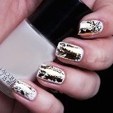 The matte image with foil in the casting technique is also attractive and unusual. In this technique, special foil is used, previously dried in a lamp. First, the surfaces are treated with gel polish, then the ornament is applied with saturated gel paint. Fat-free foil is applied matte side gradually, in order to avoid the appearance of bald spots. Then the drawing is covered with two final layers of transparent varnish.