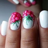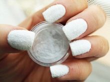 Sometimes a white nail plate is decorated with soft sand and a matte top. It turns out a magnificent velvet design with amazing flowers. A manicure with a volumetric image made by gel paste is done in special cases.
