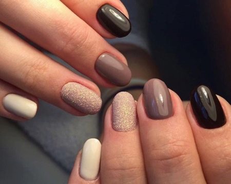 - A rare brush. This simple type of nail art can be done in different colors depending on the purpose. Discreet range is perfect for the office, bright colors - for a date or a party. First of all, you need to apply a background tone and allow it to dry, after which it is necessary to drip the desired varnish on any surface, dip the brush and hold on the nail. You can select several additional shades, washing off the previous one with nail polish remover.