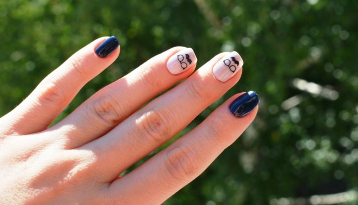 Two types of varnish - light and dark blue - themselves constitute an interesting duet. Highlighting light nails with a simple pattern will give the manicure originality.
