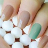 In addition, this season, stylists offer girls to combine beige with light pistachio, blue and turquoise shades of the color palette. When bright contrasts are added to the beige color of gel polish, their dosage is necessary, otherwise the saturated color will prevail in the design, which may make manicure in one way or another inappropriate.
