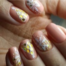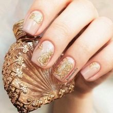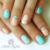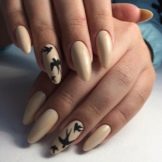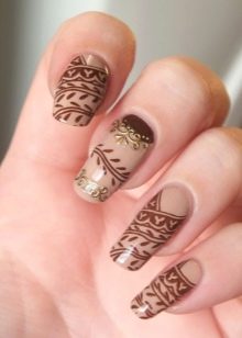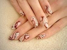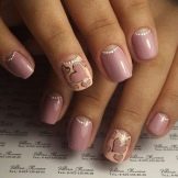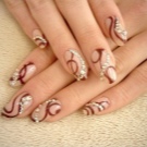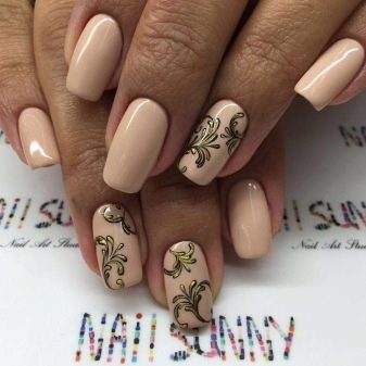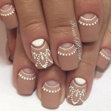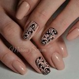 To show its versatility, you can use several tones of varnish or choose acrylic paints of several tones of beige. Look on the nails, this design will be stylish and new. In addition, if you decorate the drawing with a dark outline, white lace or even small rhinestones, the manicure will look fresh and unique.