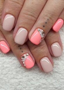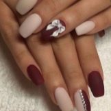 One of the most harmonious combinations is the combination of beige and brown. Such a duet allows you to refine the design, even if a simple pattern is used to accentuate nails. Looks nice beige with nude, light and dark gray tones. No less harmonious is the combination of beige with coral color.