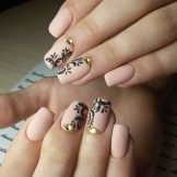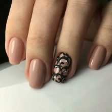 A modern beige manicure needs a dosage of accents. If earlier drawings decorated almost all nails, today such decoration is considered inappropriate. The abundance of patterns greatly simplifies any design. Accents lose their expressiveness, and design - status.