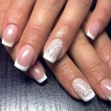 The use of patterns in the French manicure technique looks beautiful, in which one or two accent nails are decorated, instead of a traditional smile, with a simple ornament or even an ordinary row of tiny dots. Today, the selection of holes with various patterns is also used.