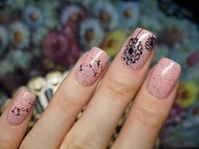 - You can not abundantly add glitter and shimmer to a design with a pattern. The premium of manicure suffers from this, it looks simpler and tasteless.