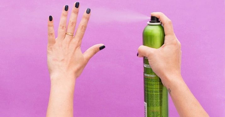 Experienced manicure experts recommend using a reliable tool for accelerated drying of varnish coatings, which is a regular hair spray. It is necessary to spray the product onto the nail plates, while choosing a special strong fixation tool. Thus, you will not only reduce the drying time, but also keep for a long time the original look of the manicure.