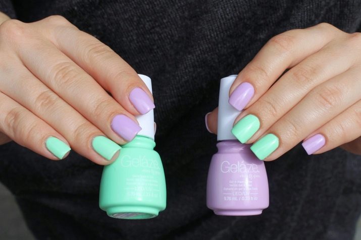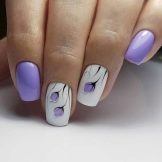 White pigment softens the violet base, it gives tenderness to any design, introducing notes of freshness and spiritual purity into it. At the same time, white color can make more tender not only warm purple: it makes softer and blue cold tones of the original color. Do not try to combine purple with brown or red. Such a connection not only looks frightening, but it is also tasteless and depressing. But the mint-purple manicure will look not only fresh, but also optimistic.
