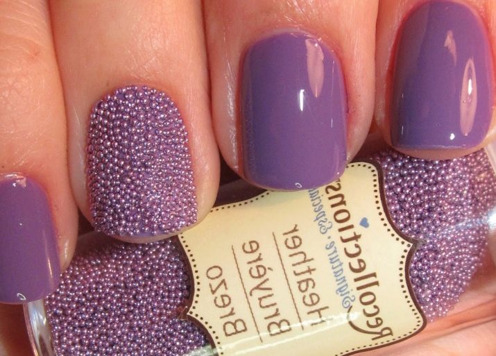 By an unusual name is meant microscopic beads, which can have a different fraction of particles and a wide palette of shades.The principle of such a manicure is similar to the method of applying acrylic powder. At the same time, broths can be used, as well as powder, for partial decoration of nails. For example, you can create various relief patterns from them, which will make the manicure expressive without simplifying its design.