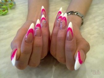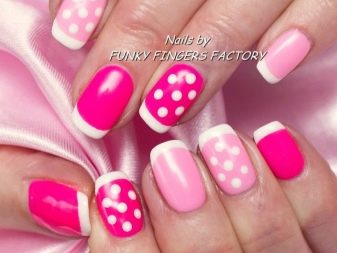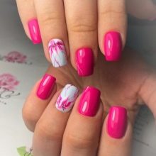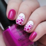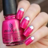 - With white. This is a very elegant and stylish combination. The versatility and complementarity of these colors will simply amaze you. Such a manicure does not need to use any additional shades. If you want to make white just a light accent, then cover only one nail with white varnish (you can use a picture), and apply a bright pink composition to the rest.