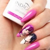 Lunar manicure is painted or, on the contrary, unpainted holes of nails. The easiest and most win-win option is to use fuchsia as the base color and highlight the hole with white. If you want to draw attention to yourself, then choose gold or silver shades for staining the wells. Moon manicure is suitable for girls and women of any age and status. However, it should be remembered that the lunar nail design visually shortens the nail.