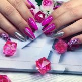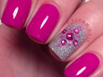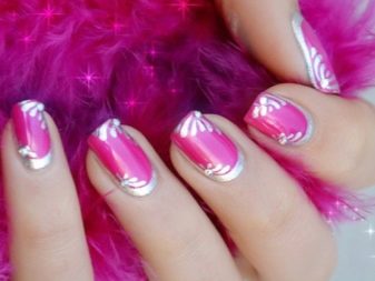 - With silver. Bright fuchsia and silver look very impressive and fresh. They will add charm and sophistication to your look. This is a brilliant combination that will never go unnoticed. Especially perfect is such a manicure in combination with silver jewelry.