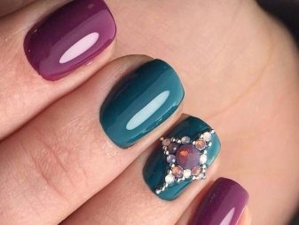 Since this color itself is bright and saturated, you should not overdo it if you chose rhinestones as the design. It is best to use such a glamorous option for holidays and special occasions. You can decorate with rhinestones not only individual nails, but also each of them. Apply rhinestones to the hole of the nail or make a small drawing of them. This will give you the opportunity to feel like a fabulous princess in any setting, and to attract universal attention.