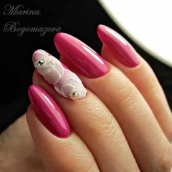 For those who like to experiment and stand out, we offer the following options for an unusual fuchsia manicure.