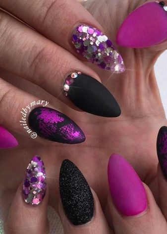 - With black. These colors create a perfect contrasting combination, as in the combination of fuchsia and white. But black, for all the racyness, is not so evident, he is good for his discreet charm. Such a manicure will be appropriate for a friendly party, and for business meetings.