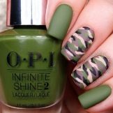 As for the shimmer, today it is used to emphasize the accents of khaki manicure. Magnetic varnishes this season are especially beautiful and differ from previous varieties in depth and volume, allowing you to create a three-dimensional effect in the design. This is used by masters of nail salons, offering their clients sometimes extraordinary masterpiece design options.