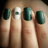 The decor is selected based on the chosen design concept and the specific manicure technique. For example, an excellent basis for design is the classic type of execution, in which the nails are completely painted. Rubbing into it a manicure fine powder, You can get a mirror, gradient or pearl coating. Khaki is an excellent basis for designing nails under the carapace of the May beetle, which is also created on the basis of the classical manicure technique.