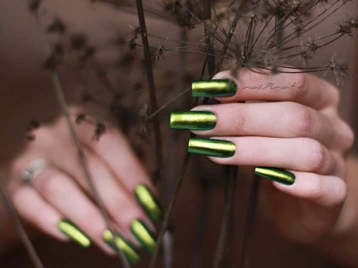 Temperature models today are inferior to chameleon, which can adapt to different lighting, slightly changing the color tone. As for mirror varnishes, they are used in manicure more often as accents, on which you can later create drawings. Moreover, designs look more impressive for which on top of the mirror base they used not only a picture, but also a special manicure powder.