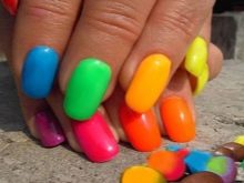 Although, if you thoroughly study all the styles that exist today, we can conclude that the multi-colored catchy nail polish gives its owner playfulness and coquetry.