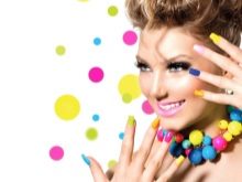 There should be so many bright colors so that the eyes of those around them do not flicker. If nails in multi-colored tones were chosen, then the robe should be presented in very calm shades. Combine in one “bow” bright colors on the nails and too flashy clothes - not worth it. Oversaturation in shades will not make a woman a fashionista, so it is better to focus on one accent.