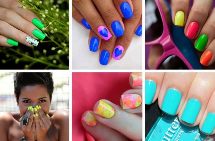 For a bright manicure, the length of the nails does not play a special role. You can stain nails of different lengths with acid colors and be sure that the pens in this decor will look dazzling.