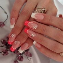 - Extra shades. Despite the fact that the main goal is manicure on nails with red and white color, additional shades can be added to the design of nails.