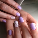 - Fringing or circled manicure. Its essence is in coloring the nail around the perimeter in a tone contrasting to the main one. To make such a manicure in a lilac design, you should paint your nails with the main varnish of violet tone, wait until it dries completely, then with a thin brush in the shape of the nail make a contrasting accent. Any colors are chosen, most importantly, their competent selection. If you wish, you can make a full border and walk the brush along the entire nail, repeating its shape, but you can leave the border on only three sides around the perimeter of the cuticle. For the upcoming holiday, ornaments in the form of rhinestones will be useful in such a manicure. Remember that decorating with rhinestones manicure should be in moderation, only one or two nails.