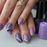 - Intricate painting. To create a mixed manicure of white and purple varnish, you will need to cover your nails with white varnish, then, dipping a brush of purple varnish in the liquid to remove, draw a curved line resembling a tree branch. Mixing of white and purple varnish. To top it off, you can add several dots in white. You can also take a blue tint and experiment with drawing lines.