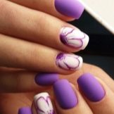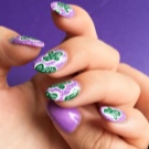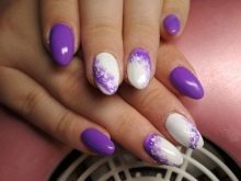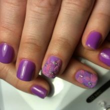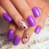 Today, there are many ideas for nail design, in which purple predominates. To perform the game in shades of the palette, various techniques are used. The combination of violet with metallic is very popular, such a manicure can also be decorated with shimmering sand, rhinestones and decorative stones. Drawings with abstractions or geometric shapes also look interesting on a purple background.