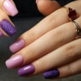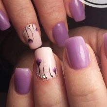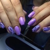 In nail design, experts recommend using not just purple, but creating multifaceted compositions from it. The nails painted with light purple and purple varnish look beautiful, their style is simple and unobtrusive. If the ladies wants to be distinguished by brutality and sexuality, then they need to choose more mysterious shades. For example, the original solution is a lilac manicure.