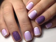 - Lunar manicure. It is in great demand among modern fashionistas. It is recommended to create it for a daily look, combining purple with pastel shades. An interesting combination is a lunar manicure with metallized pigments. It is created quickly and easily, and the rub-in technology gives the nails a special appeal.
