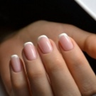 - French manicure. Usually used with white powder, but no one forbids playing with color.