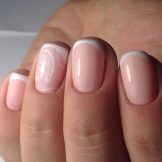 - If you need to adjust the nail plate, then camouflage is your salvation, the color should remain a natural nail, it is either beige or its shades with a pink tint.