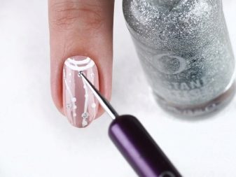 - Velvet design. When using it, the last layer is dried under the lamp, and only then a drawing is applied with a brush.