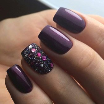Using one or several of the above options at once, you can get an incredibly stylish and bright manicure in plum color.