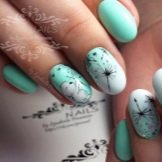 In addition, a manicure looks beautiful, made in a combination of coffee with white and flesh tones. It is fashionable to combine lilac varnish with pink and blue with milk. At the same time, accents can be placed with both white and silver varnish. The black print changes the mood of the design; it makes it elegant or even solemn.